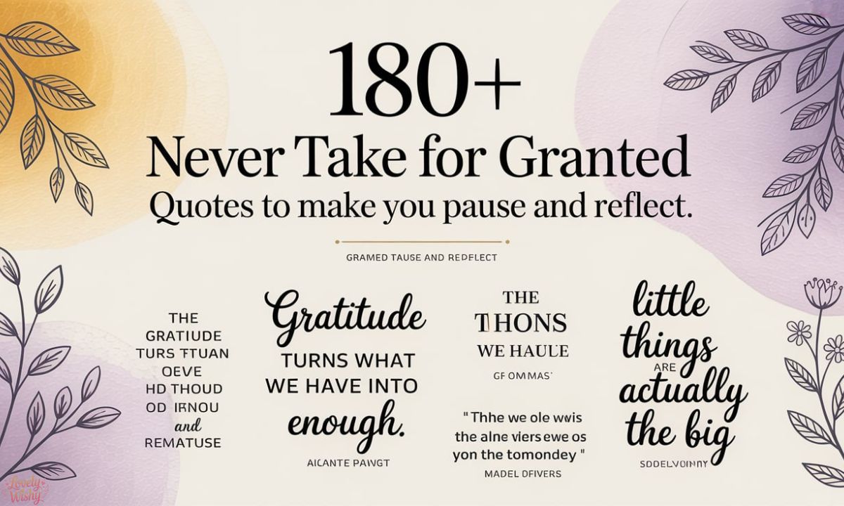 This collection of “Never Take for Granted” quotes will help you reflect deeply. They teach us to value people, time, and blessings before they are gone. Each quote inspires thankfulness and mindfulness. Let these words open your heart to appreciation today.